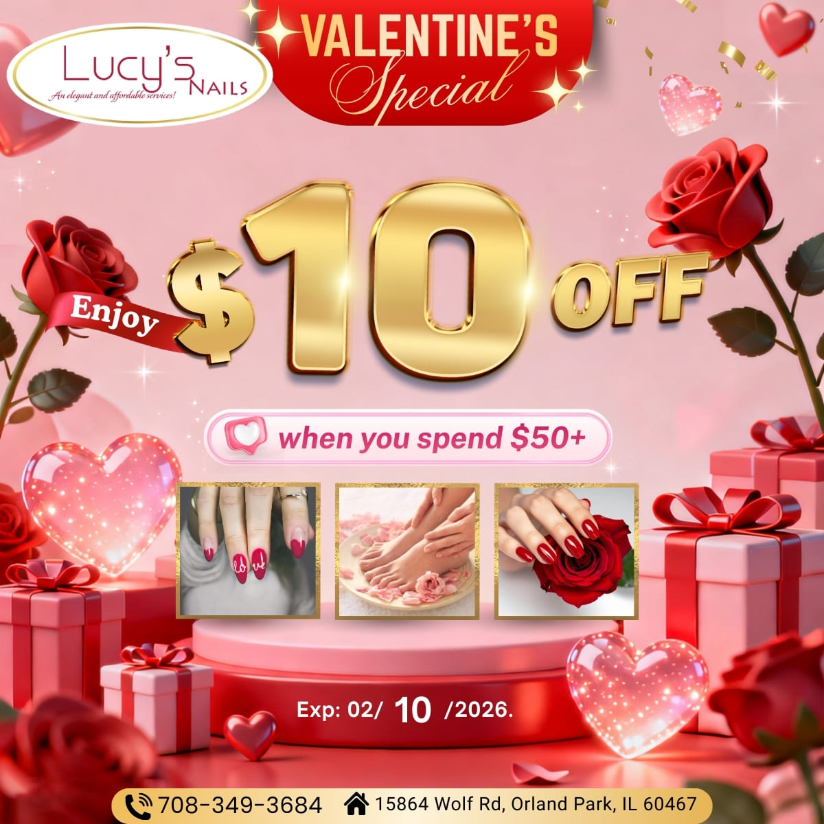 Lucy’s Nails and enjoy our happy time! Our goals are cleanliness and to make all clients satisfied. Therefore, you’ll feel a clean and elegant space when walking in. The tools and equipment we use are totally sterile. Besides, we try our best to complete our customer services – by updating hot trends and new styles. All the technicians are trained carefully in both skills and behavior – enthusiastic, creative, and professional.